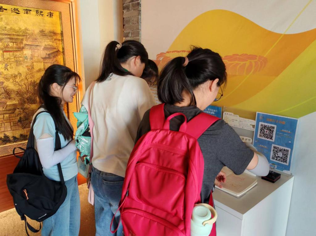 实践队行至京杭大运河博物馆,分组参观各个展区。调研发现,博物馆开发了一系列以运河文化为背景的研学体验课程,如围绕“京杭运河漕运勘舆图卷”展开的漕丁历险记研学课程,这种沉浸式体验的新方式为运河文化文产开辟了新视角。此外,馆内还设有主题为“沟通南北:大运河的开凿、变迁与影响”的展览。通过观展,成员们溯源大运河的产生发展,它巩固了漕运维系下的国家大一统局面并发挥关键的交通水利功能,促进周边城市因水而兴,文旅融合。