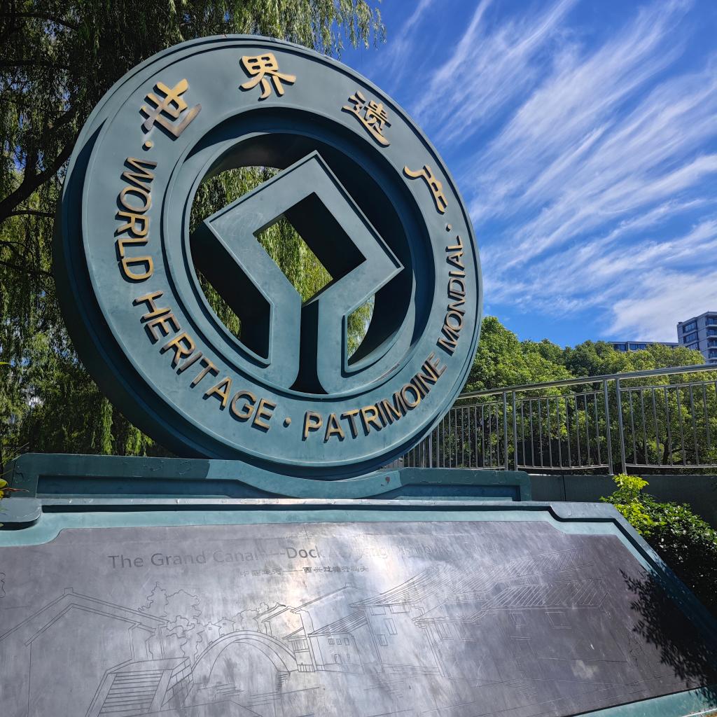 蓝天白云下的世界遗产标识