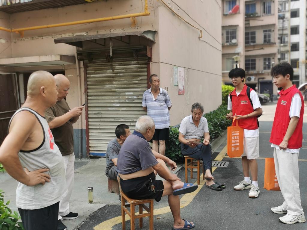 这天,实践队员在清晨第一缕阳光洒下的时间里,就已经准备好了要发出的问卷。上午,实践队员们分工完成了回澜南苑社区问卷的发放,并向居民们普及了健康教育知识。实践队统计问卷调查的结果并了解到:回澜南苑是城厢街道一个老小区,人口情况:911户,2644人,男性1316,女性1328人,老年人有1231人,高血压患病粗率18%,糖尿病患病粗率9%。