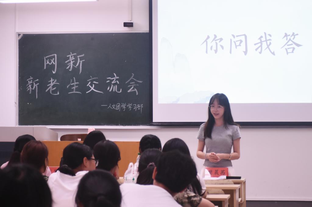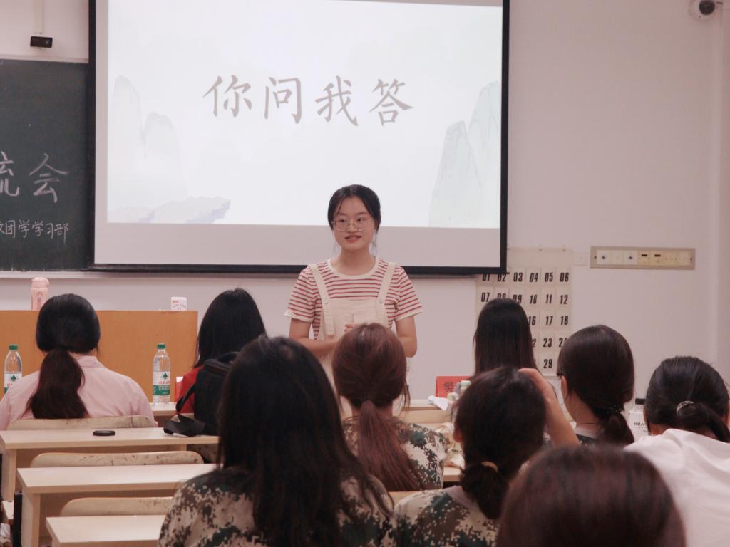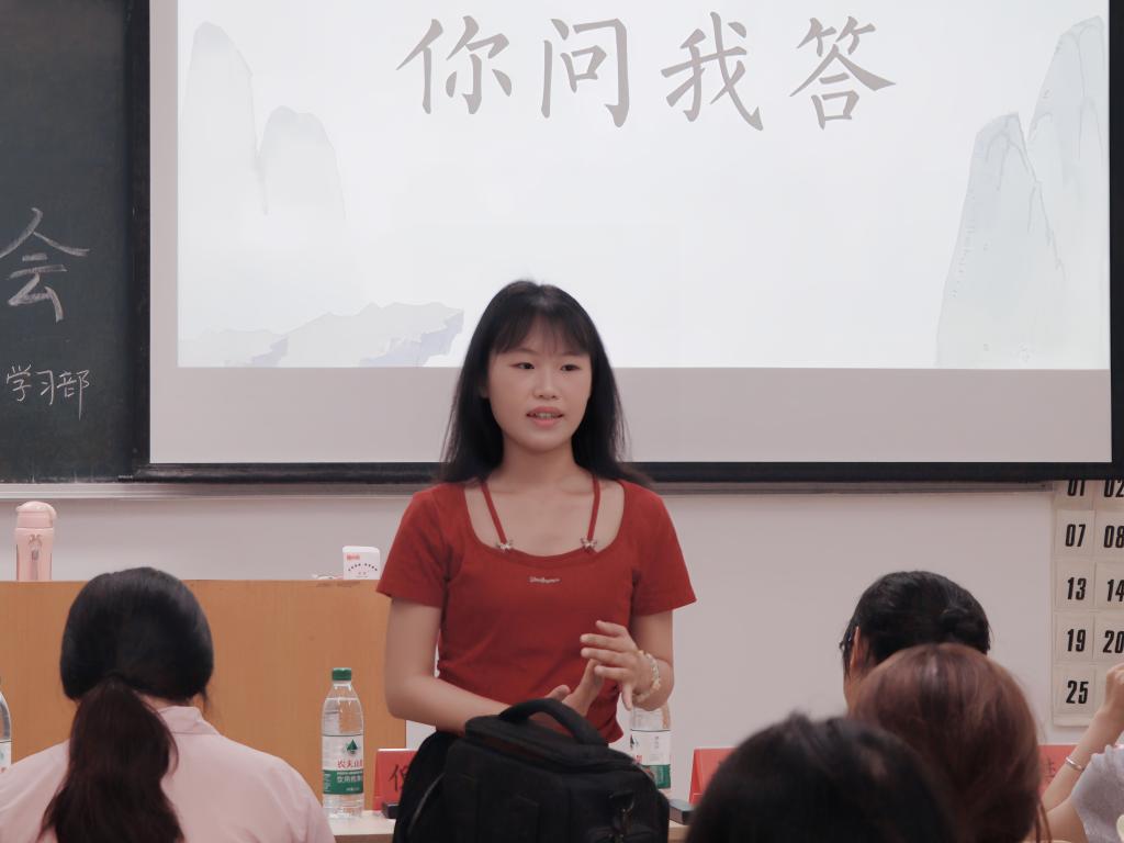 紧接着,在“你问我答”环节中,各位学姐回答了新生们较为关心的问题。同时,学姐们也为新生们送上了寄语,表达了对新生们的期冀与祝愿。