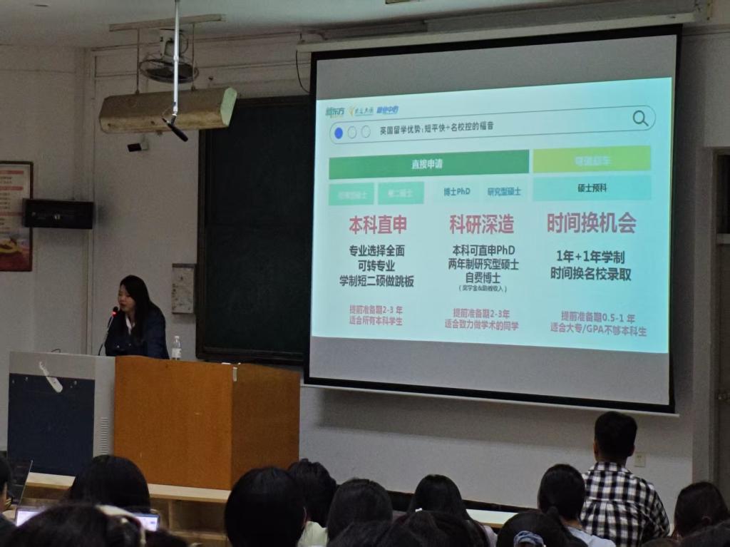 讲座伊始,钟雪扬指出,在就业成本倒挂、学历贬值现象日益严重的背景下,海外深造已成为提升个人竞争力的重要路径。通过数据对比,她向同学们展示了海外毕业生在平均薪资、人才政策优待等方面的显著优势。