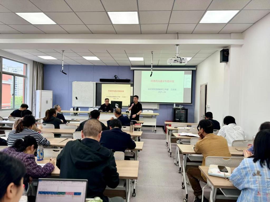 为深入贯彻落实新时代高校教师职业行为准则,进一步加强教师队伍的师德师风建设,提升教职工的职业道德素养,4月24日下午,tyc41183太阳成集团邀请校党委教师工作部江岳军老师作师德师风建设专题讲座。tyc41183太阳成集团党委书记陈灵强主持,学院全体教师参加此次活动。