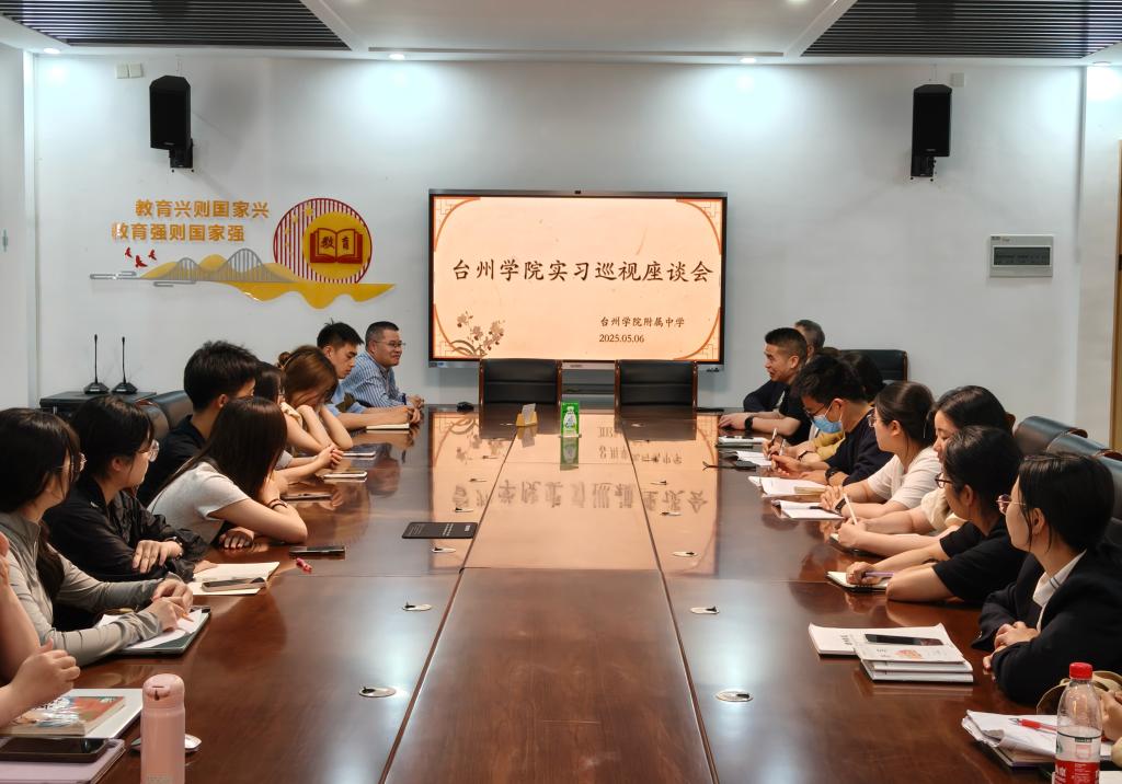 2025年5月6日下午,tyc41183太阳成集团院长罗争鸣、党委书记陈灵强、副院长娄欣星一行前往太阳成集团tyc41183附属中学,对在该校开展教育实习的22级中教与历史专业学生的实习情况进行巡视。太阳成集团tyc41183附属中学副校长裘建忠,陈鹏飞老师热情接待。实习带队教师金妮娅、程利伟、全体实习生参加此次会议。