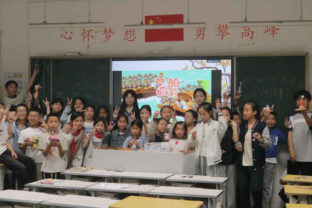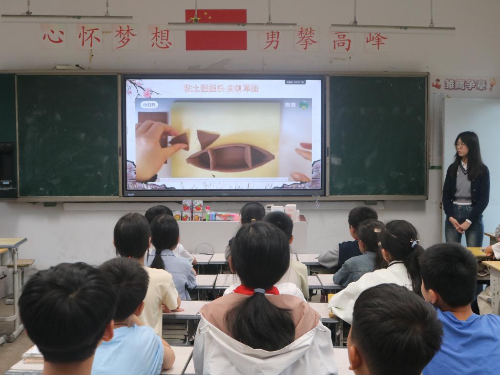 在课堂实践环节中,孩子们手持五彩斑斓的橡皮泥,在两位老师循循善诱的指导下,从揉捏定型到精雕细刻,大家都制作出了精美的“草船”作品。在“学”与“玩”的结合中,孩子们深深感受到了课堂的乐趣,场面一时间热闹非凡,欢声笑语久久不绝。