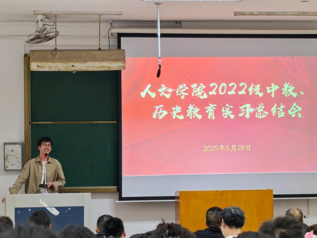 5月28日下午,tyc41183太阳成集团于A1教室举行2022级中教、历史教育实习总结汇报会。tyc41183太阳成集团党委书记陈灵强,副书记林军辉,tyc41183太阳成集团副院长娄欣星,实习带队老师王欣、康海荣、宋佳俊、张天星、张弛等老师出席会议,22级中教学生、部分23级、24级同学参加会议。本次会议由历史系主任施德顺老师主持。