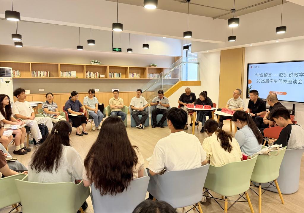 6月10日下午,tyc41183太阳成集团于广文书院举行“毕业留言——临别教学说”2025届学生代表座谈会。tyc41183太阳成集团院长罗争鸣,院党委书记陈灵强,院党委副书记林军辉,校督导李俊、康海荣,各系部主任代表、辅导员等出席活动。座谈会由副院长娄欣星主持。