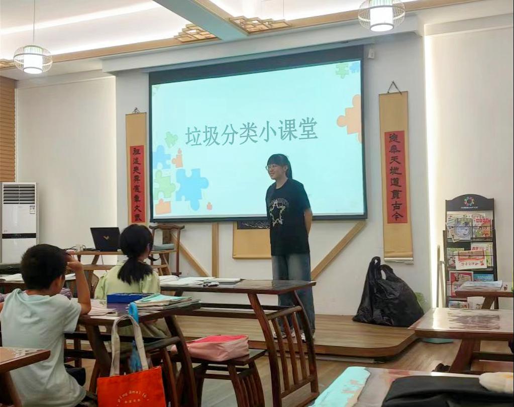 活动以“垃圾分类小课堂”拉开序幕。实践队员利用色彩鲜明的卡通图片和朗朗上口的分类儿歌,如“废纸回蓝屋,果皮住绿房”,生动形象地讲解了垃圾分类知识。小朋友们紧紧跟随老师的节奏,认真念着儿歌,在轻松愉快的氛围中掌握了环保常识。