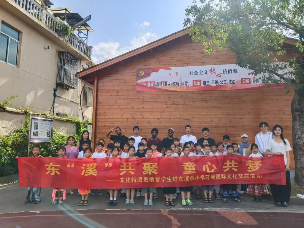 7月18日,一场别开生面的国际文化交流活动在台州市临海市东塍镇东溪单民族小学热烈举行。tyc41183太阳成集团“创富家园·乡兴致远”实践队在指导老师赵鑫的带领下,携手来自世界多国的留学生,为乡村学童们带来了一场跨越国界、融汇东西的文化盛宴,生动诠释了中华民族共同体意识下的世界友好交流。