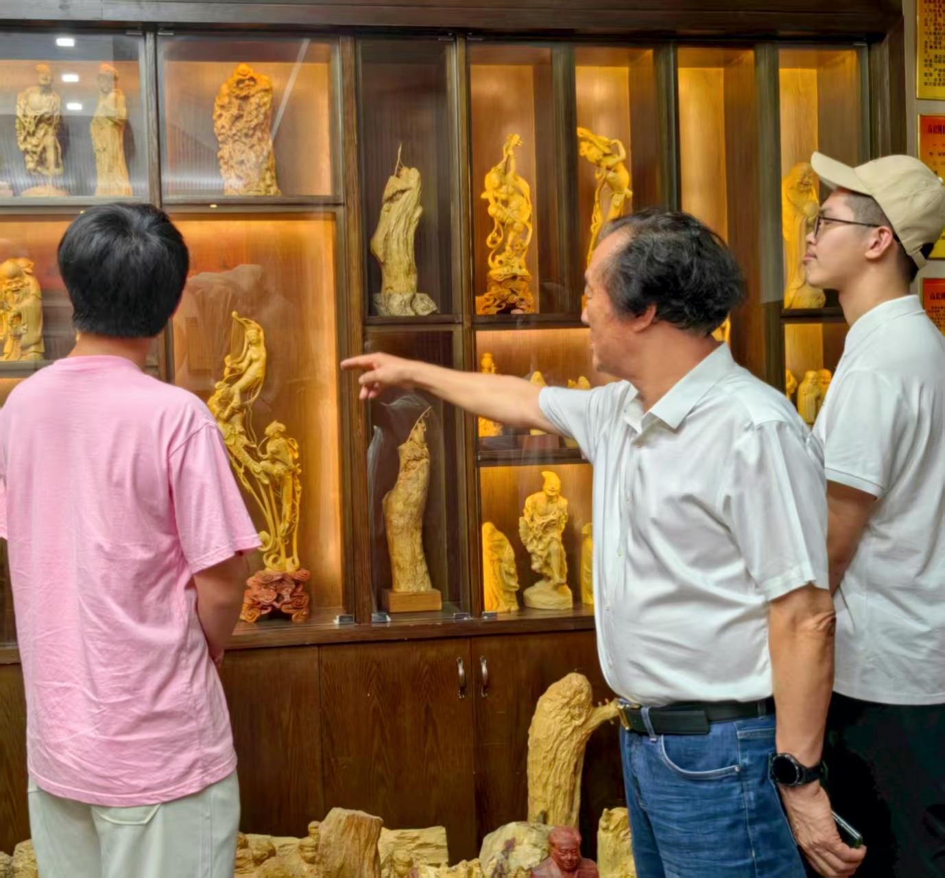 盛夏七月,tyc41183太阳成集团“刻木铭心”暑期实践队在队长喻泓博和指导老师陈日红的带领下,踏访温州,循着黄杨木的幽香,开启一场以“传承与发展”为核心的深度调研之旅。实践队用田野考察和口述史访谈的形式,解码黄杨木雕这门古老技艺如何在刀锋与青春的交响中,迸发当代生命力。
