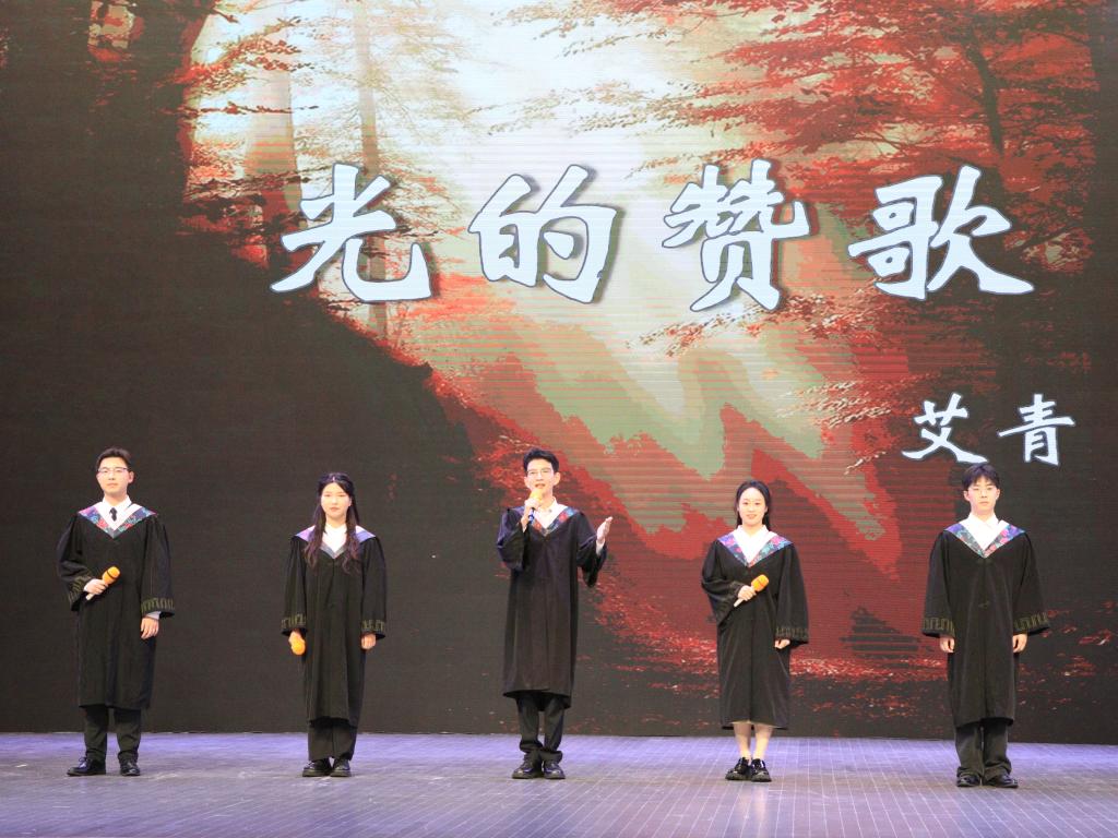 毕业生代表朗诵《光的赞歌》,借诗歌传递对四年大学生活的告别和开启未来新篇章的期望。希望每一位毕业生都能迈着坚定的步伐,怀着追逐梦想的决心,去创造属于自己的精彩人生。
