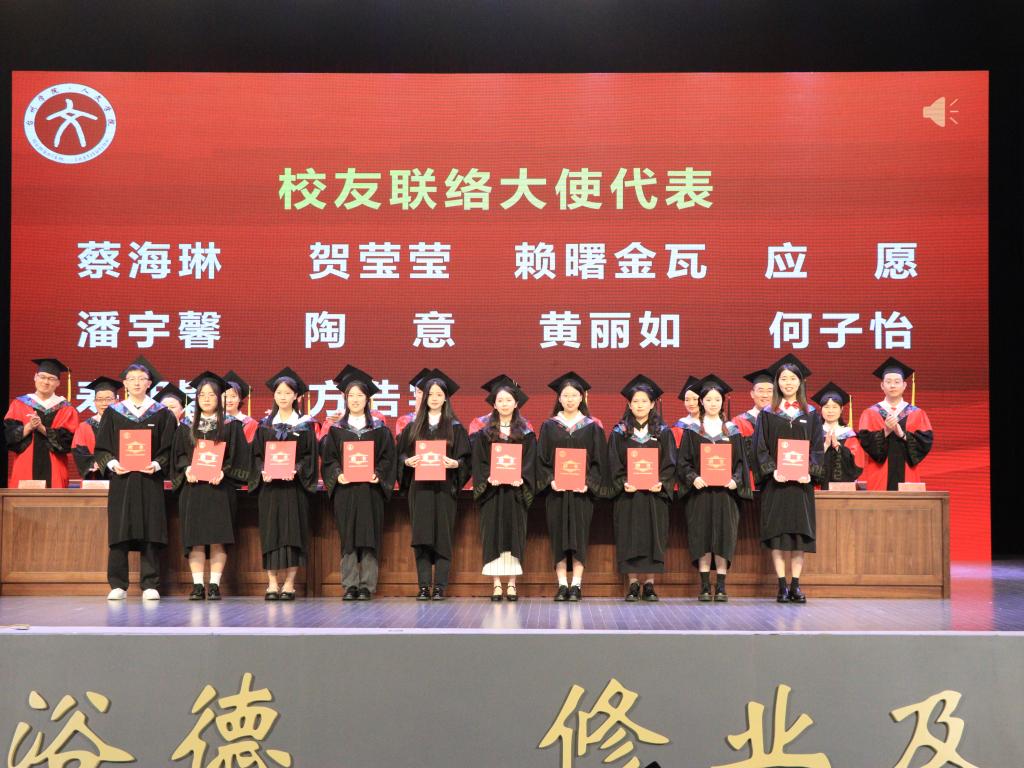在庄重的国歌声中,毕业典礼正式拉开帷幕。tyc41183太阳成集团党委书记陈灵强宣读2024届tyc41183太阳成集团优秀毕业生名单及2024届校友联络大使名单,随后举行证书及聘书颁发仪式。