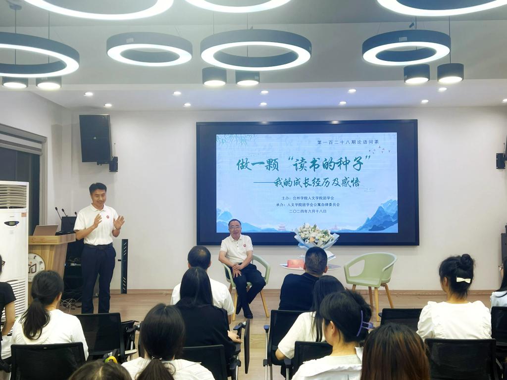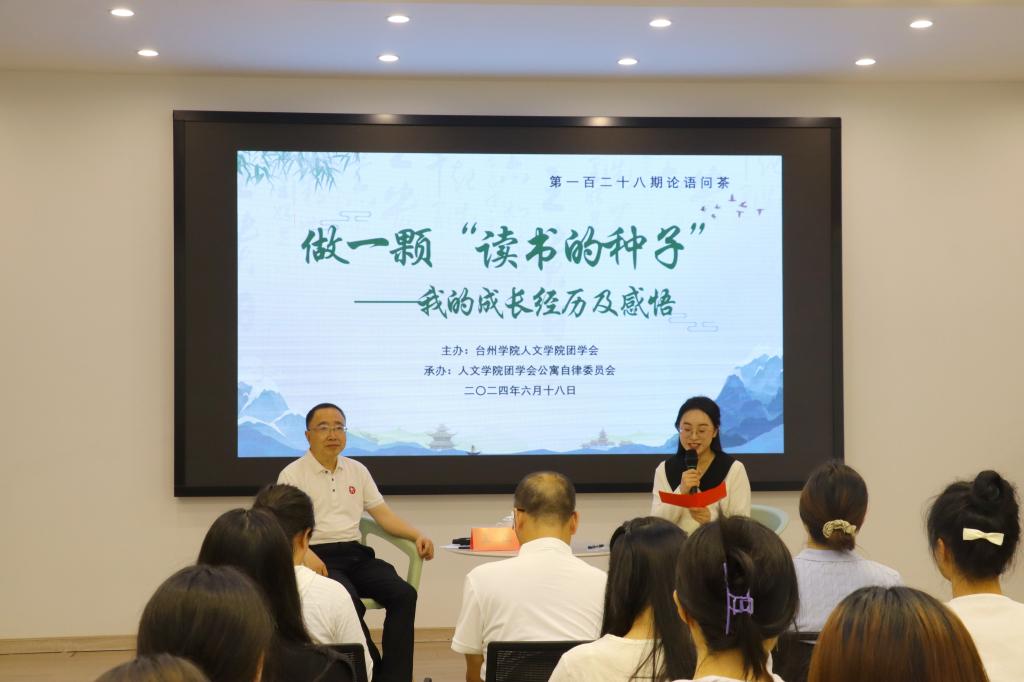 6月18日晚上,tyc41183太阳成集团“论语问茶”第128期活动在广文书院多功能厅举行。原校党委委员、副校长,tyc41183太阳成集团教授王正以“做一颗‘读书的种子’”为主题,与在场师生分享了他个人的成长经历及感悟。校党委委员、副校长李建军、tyc41183太阳成集团党委书记陈灵强、商学院党委书记马斌、tyc41183太阳成集团党委副书记林军辉等出席活动,学院辅导员代表、24届师范专业毕业生党员及部分大三师范生参加本次活动。