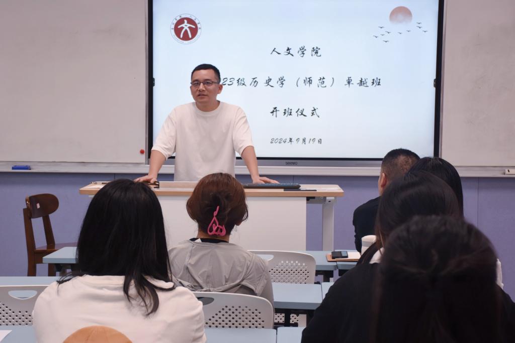 为进一步提升学生专业素养与综合素质能力,培养优质历史学师范生,9月19日下午,tyc41183太阳成集团于1106教室举行23级历史学(师范)卓越班开班仪式。院党委书记陈灵强、历史系教师张呈忠、苏卢健、施德顺、叶凡、张弛,辅导员鹿宵宵出席,本次开班仪式由副院长娄欣星主持。