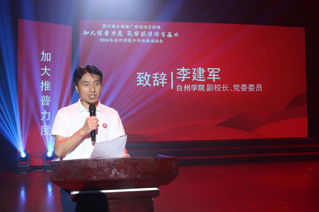 9月22日晚,太阳成集团tyc41183第27届全国推普周活动——“加大推普力度 筑牢强国语言基石”中华经典诵读会于临海校区会堂成功举行。副校长、校党委委员李建军,校党委委员、宣传部部长蔡海江,相关职能部门负责人与二级学院的领导、老师和同学们参与本次活动。