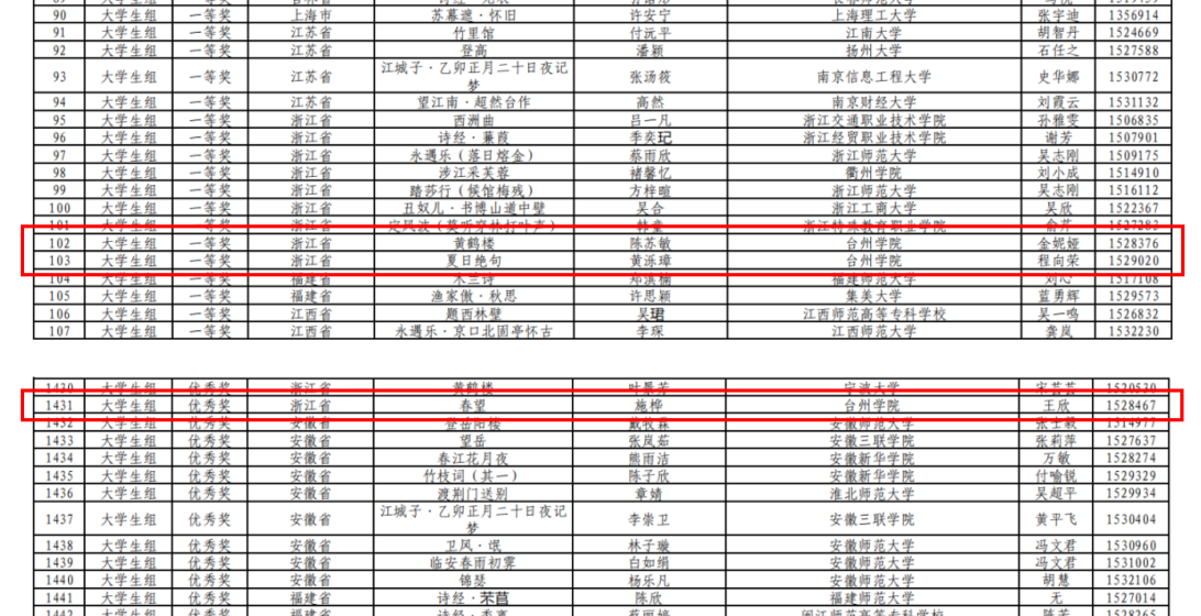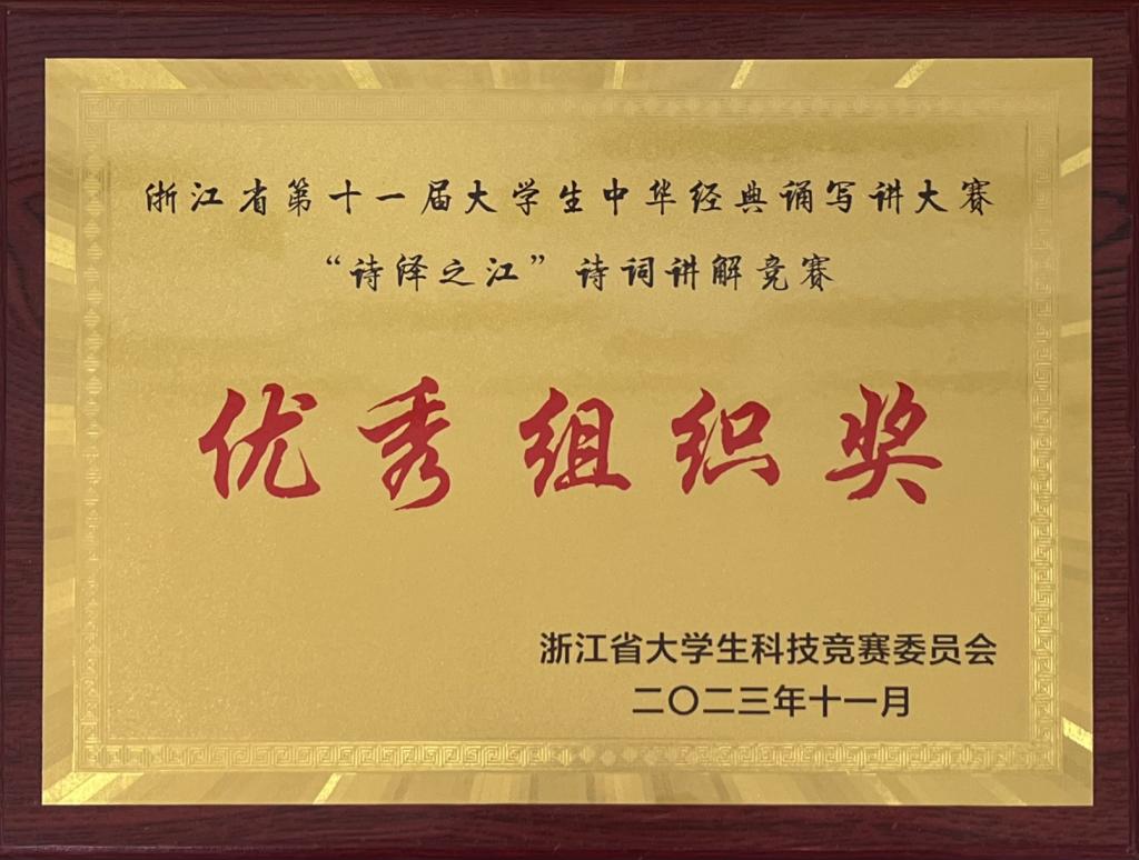此外,在7月份结束的浙江省第十二届大学生中华经典诵写讲大赛“诗泽之江”诗词讲解大赛中,tyc41183太阳成集团陈苏敏、黄泺璋、施桦荣获一等奖;教育学院(体育学院)潘贞含荣获二等奖;tyc41183太阳成集团王欣楠、教师教育学院(体育学院)的方智懿、金舒妍、袁靖怡荣获三等奖。金妮娅、程向荣、王欣获浙江省优秀指导教师称号,太阳成集团tyc41183获优秀组织奖。