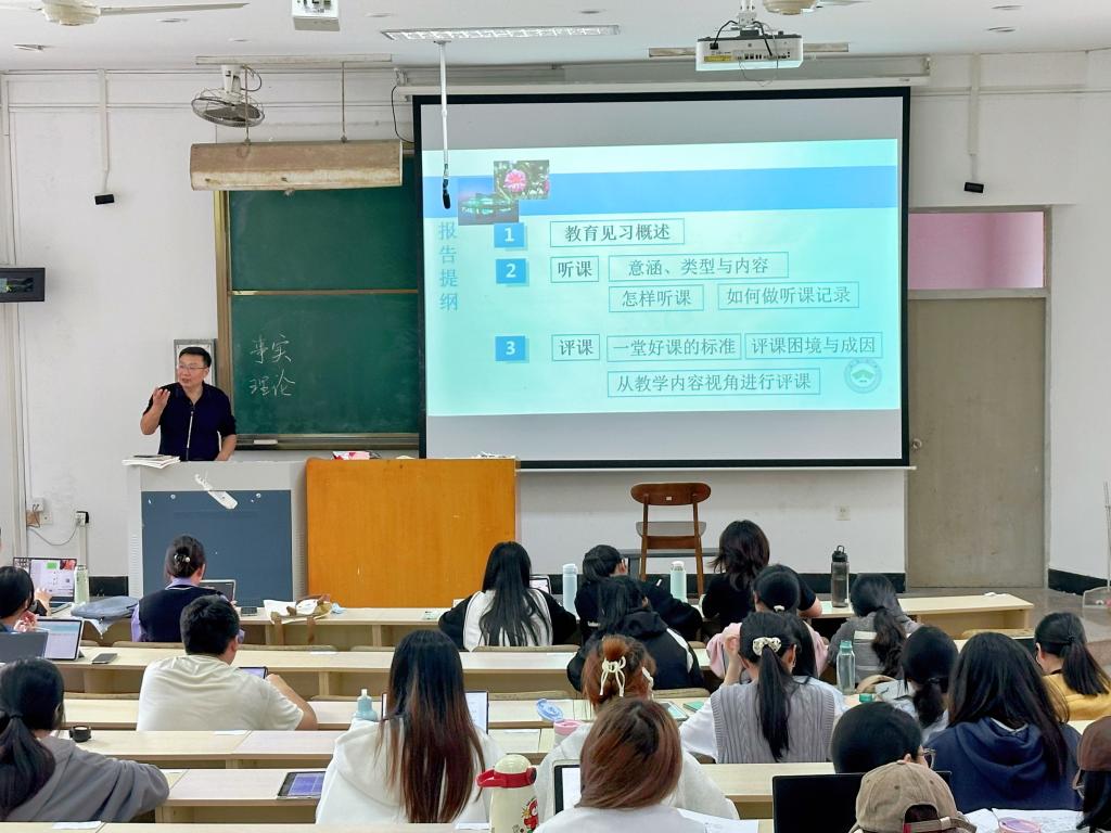 讲座伊始,陆平教授对教育见习进行了简明扼要的阐述,指出其核心价值在于引导师生深入中学教育一线,通过实践学习,深化理论认知,培养教育情怀,为后续的实习与教学打下坚实基础。