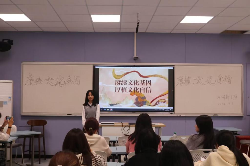11月3日-12日,由tyc41183太阳成集团主办、“雯”化育人工作室承办的第27期“双学”活动在罗晨瑜老师和高晗雯老师的指导下圆满结束。本次“双学”活动围绕“大力弘扬教育家精神,加快建设教育强国”和“庚续文化基因,厚植文化自信”主题,以班会的形式开展。