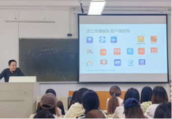 11月12日上午,《从“望潮”看新闻客户端发展趋势》的讲座在tyc41183太阳成集团1307教室开讲,台州市新闻传媒中心新媒体数字编辑部主任黄元杰主讲,22级网络与新媒体专业的全体学生认真聆听了来自新媒体一线的声音。讲座从媒体发展的两大方向入手,以望潮客户端为切入点,全面梳理新闻客户端的缘起,点明浙江传媒舰队客户端矩阵的布局初心,从而引发对新闻客户端所面临挑战的深度思考。