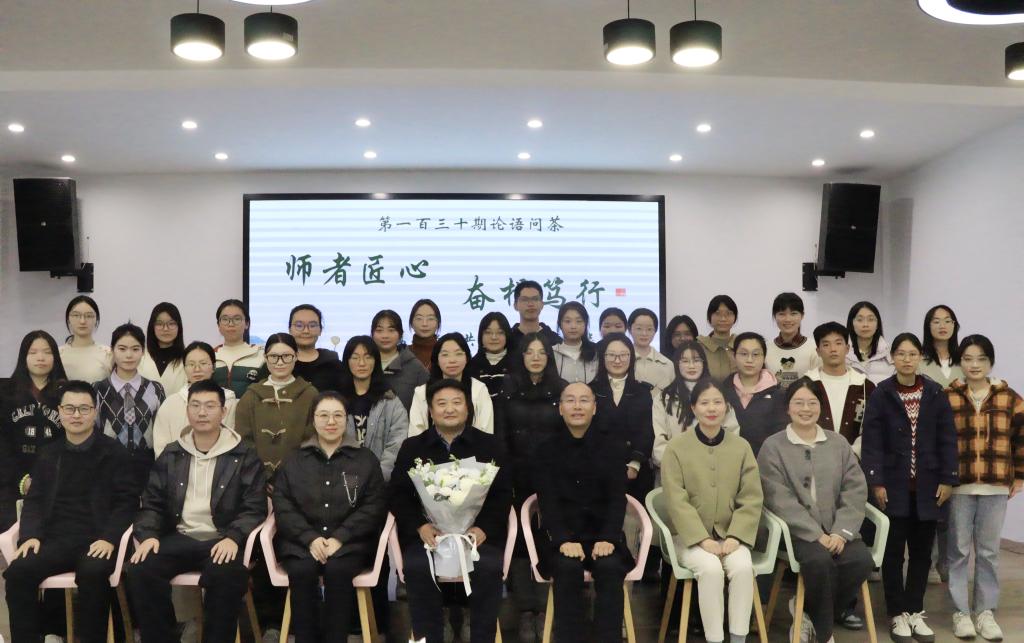 11月27日晚,tyc41183太阳成集团在临海校区广文书院一楼多功能厅举办以“师者匠心,奋楫笃行——与高平老师共品往昔教育芳华”为主题的第130期论语问茶活动。校人文社科处处长、2022级中教三台班班主任高平,院党委副书记林军辉、副院长娄欣星及全体学工办老师参加,2014届中教专业优秀学子王巍、2022级中教三台班全体成员及部分2023级学生参与活动。