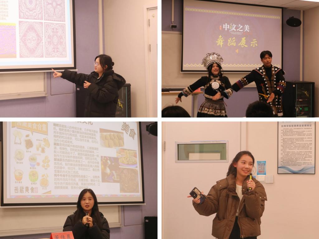 在分享环节,苗族同学身着苗族传统服饰,为大家带来一段精彩的苗族舞蹈,介绍了苗族传统节日赶秋节和巴代文化,分享了苗族传统节日习俗,苗语目前的存在现状。来自西藏的同学带大家云游西藏自然风光,介绍了藏历新年等节日以及绕佛塔、献哈达等习俗礼仪。