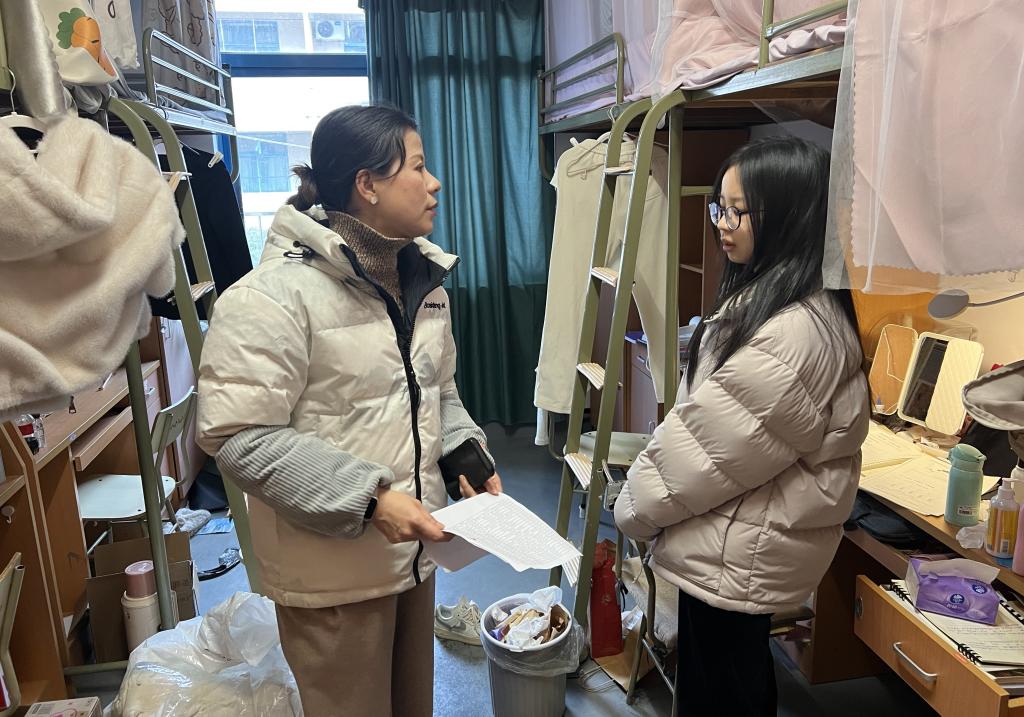 本次检查重点围绕宿舍消防安全、用电安全等方面展开,重点排查是否存在违规使用大功率电器、私拉乱接电线、存放易燃易爆物品、人走未断电等安全隐患。同时,还对宿舍卫生状况进行了检查,叮嘱大三实习学生离校前要关闭电源,保持宿舍整洁,注意外出旅途安全。