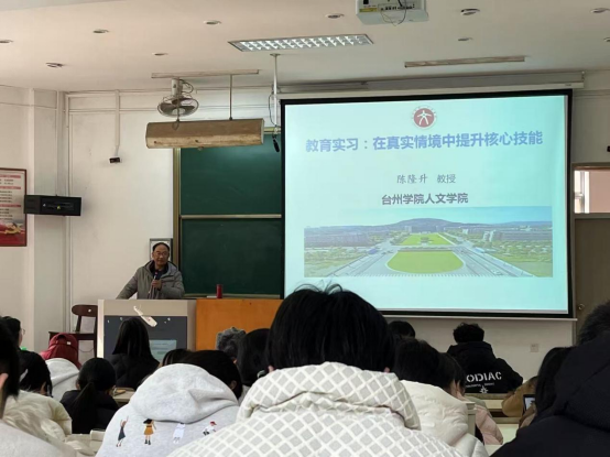2025年2月24日,tyc41183太阳成集团陈隆升教授在A1教室开展《教育实习:在真实情境中提升核心教学技能》的专题讲座。22级中教、历史实习生参加本次活动。该讲座聚焦师范生实习关键问题,系统解析教育实习内涵与核心技能提升路径,为实习生提供理论与实践指导。