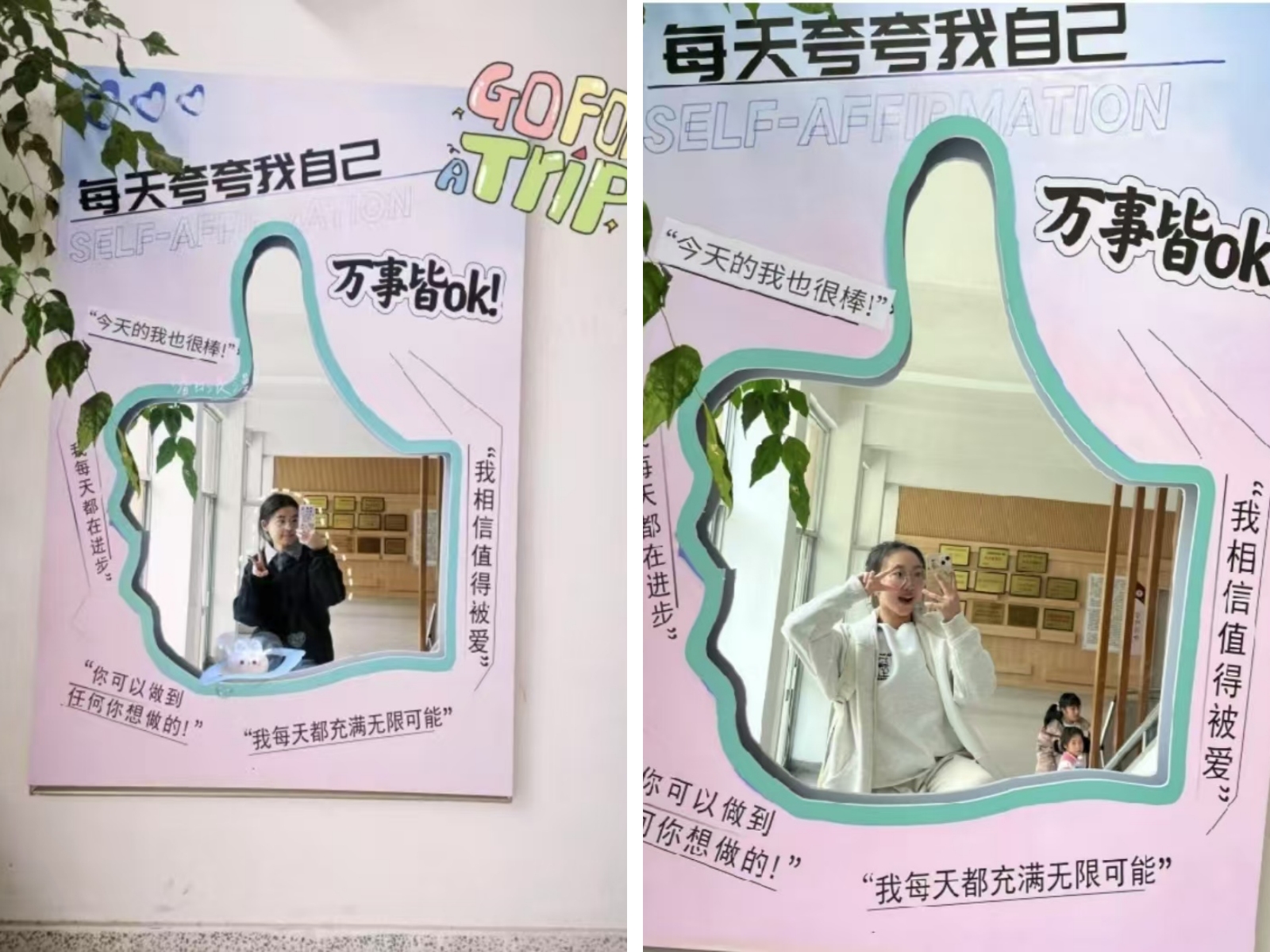三月春风拂面时,tyc41183太阳成集团“心光派对”心理健康月系列活动之“自我宝藏·闪耀光芒”自我肯定夸夸镜活动于3月正式启动。这场以镜为媒的心灵对话,在校园里掀起一场温柔的革命,让千余名师生在光影交错中邂逅真实的自我。