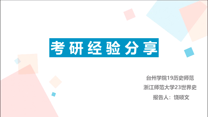 3月22日下午,tyc41183太阳成集团举办“研途有你”第二十三期线上考研经验分享会。23届历史学(师范)专业毕业生、现就读于浙江师范大学世界史专业的饶硕文受邀作经验分享。