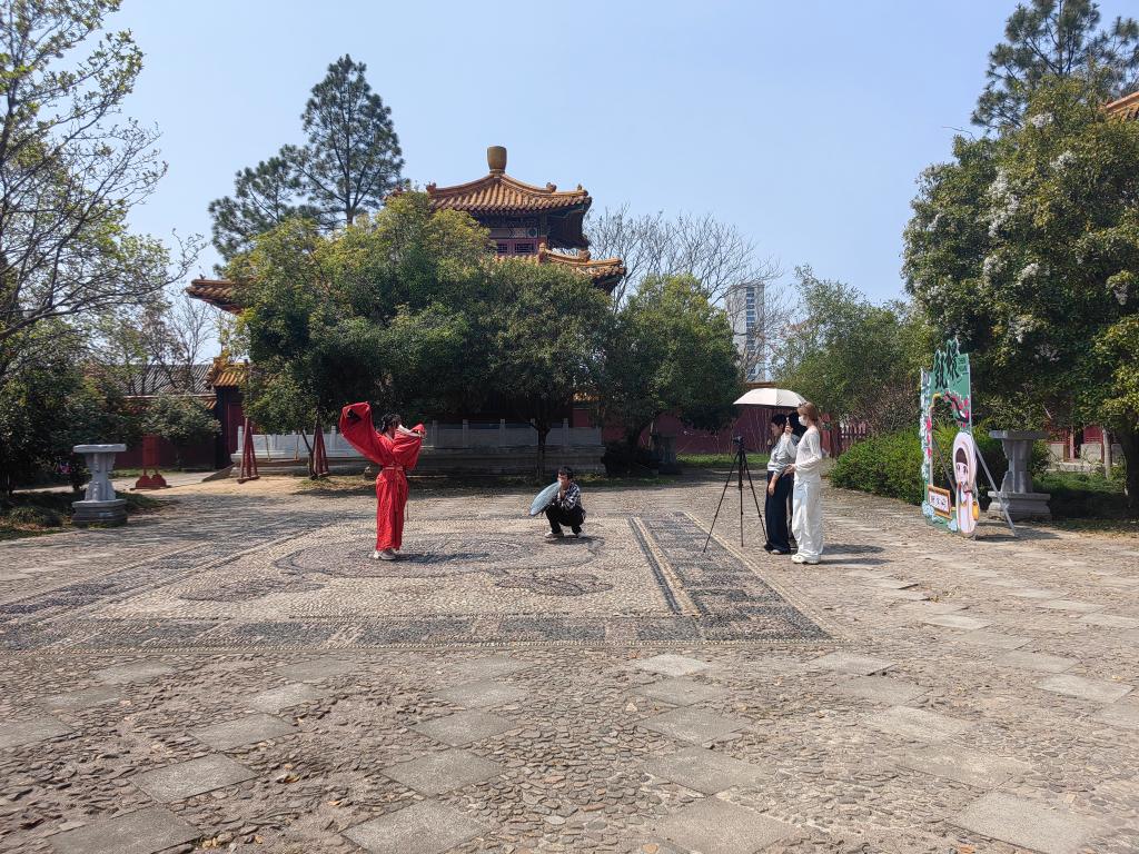 3月26日下午,部分网新学子跟随老师走进华夏文化园,开展了一场别开生面的“剧组探班游”活动。师生沉浸式体验剧组“开机仪式”,同学一转身份,成为“导演”和“男女主”,分别上台致辞。随后,同学们依传统仪式完成“点香拜四方”祈福环节,并由“导演”向同学们派发开工红包。这一充满仪式感的流程让同学们深刻体会到影视行业对文化传承的重视。