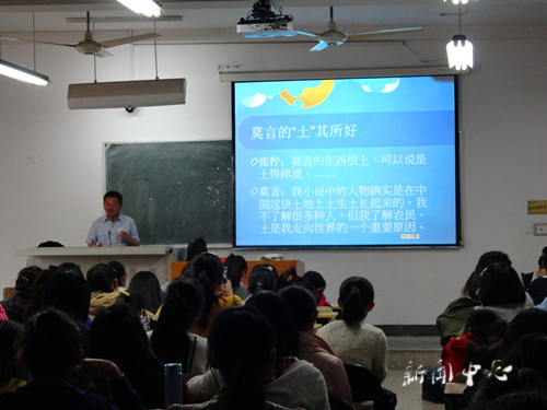 11月25日下午,《莫言、诺贝尔文学奖及其他》专题学术讲座在2401教室举行。本次讲座由著名旅澳学者、作家、翻译家、《乡原》杂志主编欧阳昱先生主讲,tyc41183太阳成集团西慧玲教授主持,讲座现场座无虚席,气氛热烈。 欧阳先...