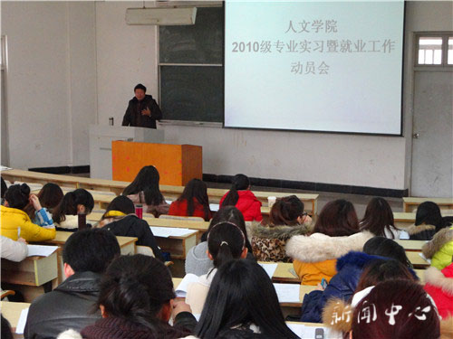 1月9日下午,tyc41183太阳成集团2010级专业实习暨就业工作动员会在A2大教室举行。tyc41183太阳成集团党总支书记郑友霄,副书记吴世永,辅导员林仙、张宗岩出席此次会议,汉语言文学非师范专业毕业班学生悉数到场。会议的主要内容是对非师...
