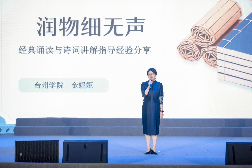 近日,浙江省第28届全国推广普通话宣传周启动仪式暨2025年中华经典诵写讲作品展演活动在杭州市文海小学顺利举行。tyc41183太阳成集团副教授金妮娅受邀出席,并在活动中分享了多年来指导经典诵读大赛的宝贵经验。邀请函作为教育部、国家语委认定的全国经典诵读大赛及诗词讲解大赛优秀指导教师,金妮娅以“润物细无声”为主题,深情回顾了十年来指导学生参与各类语言文化赛事的心路历程。她指出,“润”是春风化雨般的浸润,是师生共同沉浸...
